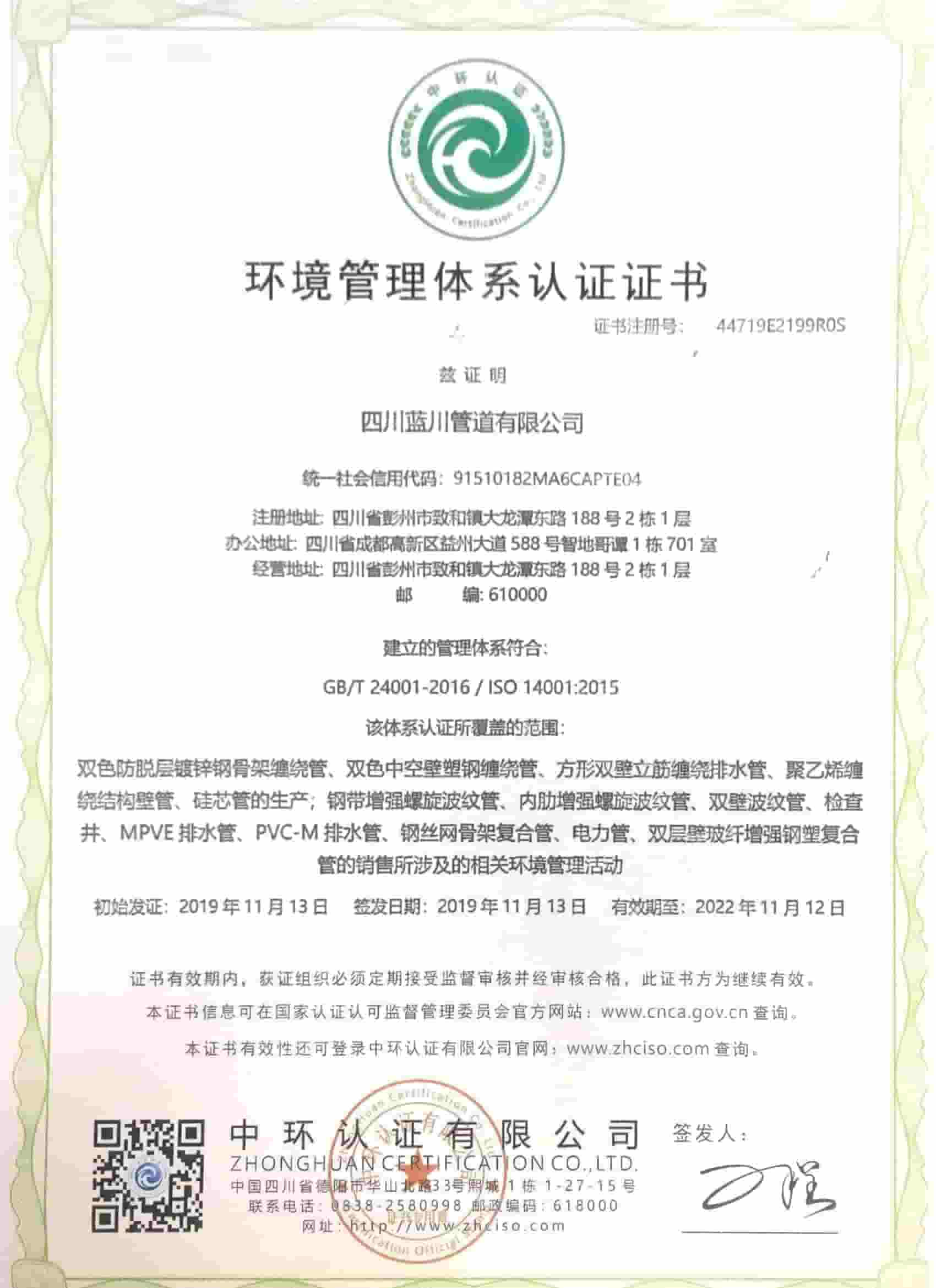四川藍川管道有限公司(成都藍川科技有限公司)成立于2012年,生產基地坐落于“牡丹之城”四川彭州市工業開發區,營運中心位于成都市高新區益州大道,注冊資本5仟萬,占地面積2萬余平米,年生產能力達1萬噸以上;是一家專業研發、生產、銷售新型市政工程管道的高新技術企業。目前擁有大型市政排水管生產線5條,給水管生產線5條,電力管生產線2條。主要產品有:防脫層鍍鋅鋼骨架纏繞管、雙層壁克拉管、雙色中空壁塑鋼纏繞管、方形雙壁立筋纏繞管、內肋管、雙壁波紋管、給水管、電力管、硅芯管等。 公司是四川省湖南商會“常務副會長單位”和“創新湘商”,中國塑料加工工業協會“塑料管道專業委員會會員單位”,獲得了30余項發明專利和實用新型專利,2020年評為《高新技術企業》,公司通過了《質量管理體系認證證書ISO9001:2015》,《職業健康安全管理體系認證證書OHSAS18001:2018》,《環境管理體系認證證書ISO14001:2015》;公司于2019年主編了《雙色防脫層玻璃纖維增強鍍鋅鋼骨架纏繞管》T/SCSX0906-2019,《雙壁纖維網鋼塑復合管》T/SCSX0916-2019,兩項團體標準,并獲得了四川建設科技發展中心頒發的《四川省建設領域科技成果或應用技術備案證書》;公司“藍川”牌雙孔雙色共擠中空壁塑鋼纏繞聚乙烯管道、GSRC雙色雙層共擠玻纖增強防脫層鍍鋅鋼骨架纏繞管、方形雙壁立筋纏繞管、玻璃纖維增強內肋硅芯層塑料電纜導管系列產品多次被中國企業發展促進委員會、中國優質品牌統計中評定為“綠色環保推薦企業”、“工程建設推薦產品”、“質量.服務誠信AAA企業”、“質量檢驗.國家標準合格產品”、“中國自主創新產品”。
